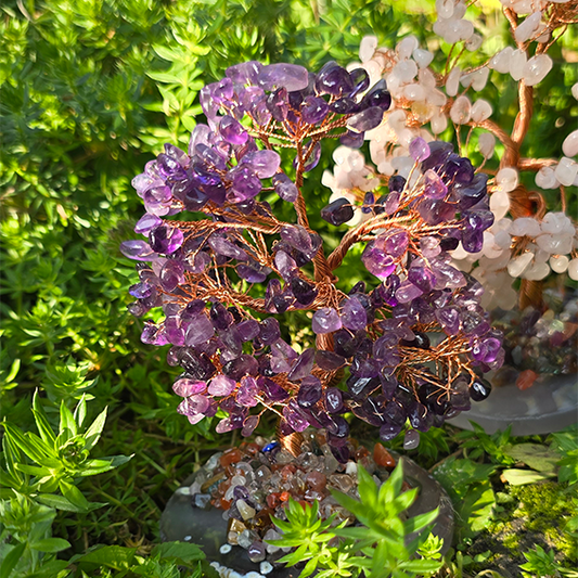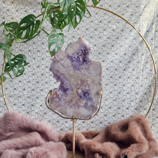 XL Amethist (Roze) met Amethist Clusters (Paars) schijf op standaard