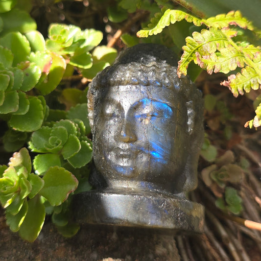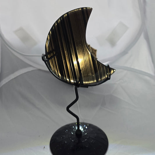 UitverkochtMaan op standaard (Lamellen Obsidiaan)