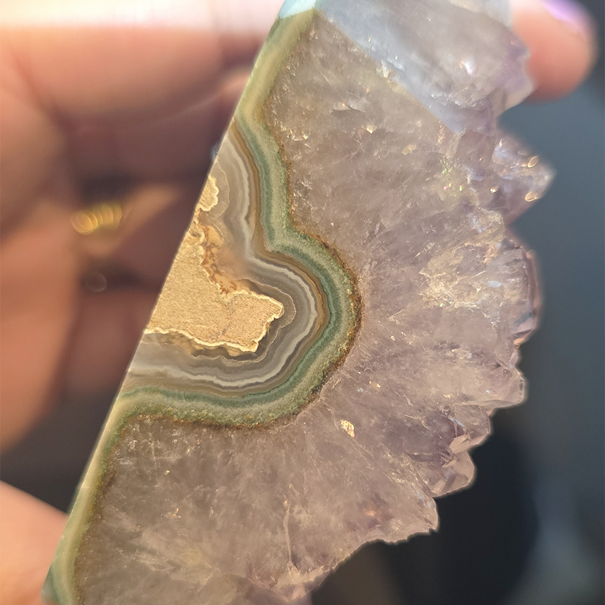 Amethist is een paarse variant van kwarts en is samengesteld uit siliciumdioxide met sporen van ijzer, waardoor het zijn karakteristieke paarse kleur krijgt. De kleur van amethist kan variëren van lichtgrijs en lila tot dieppaars.