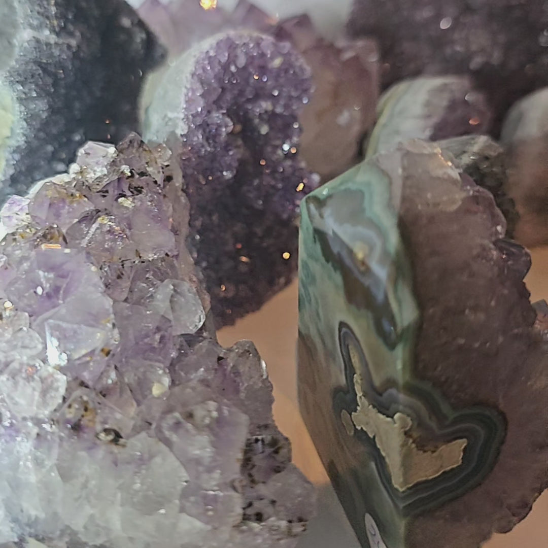 Amethist clusters zijn formaties van amethistkristallen die samengroeien in een clusterachtige structuur.