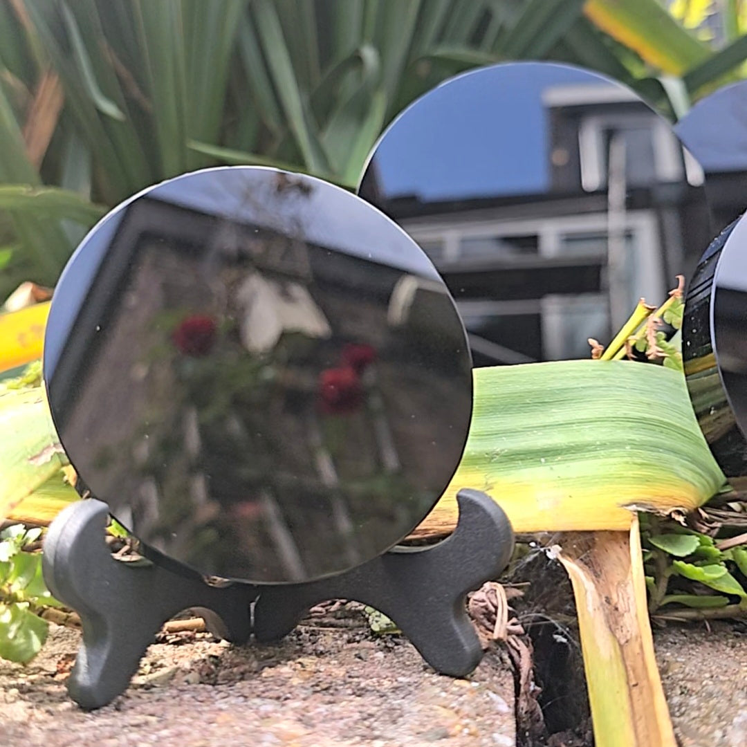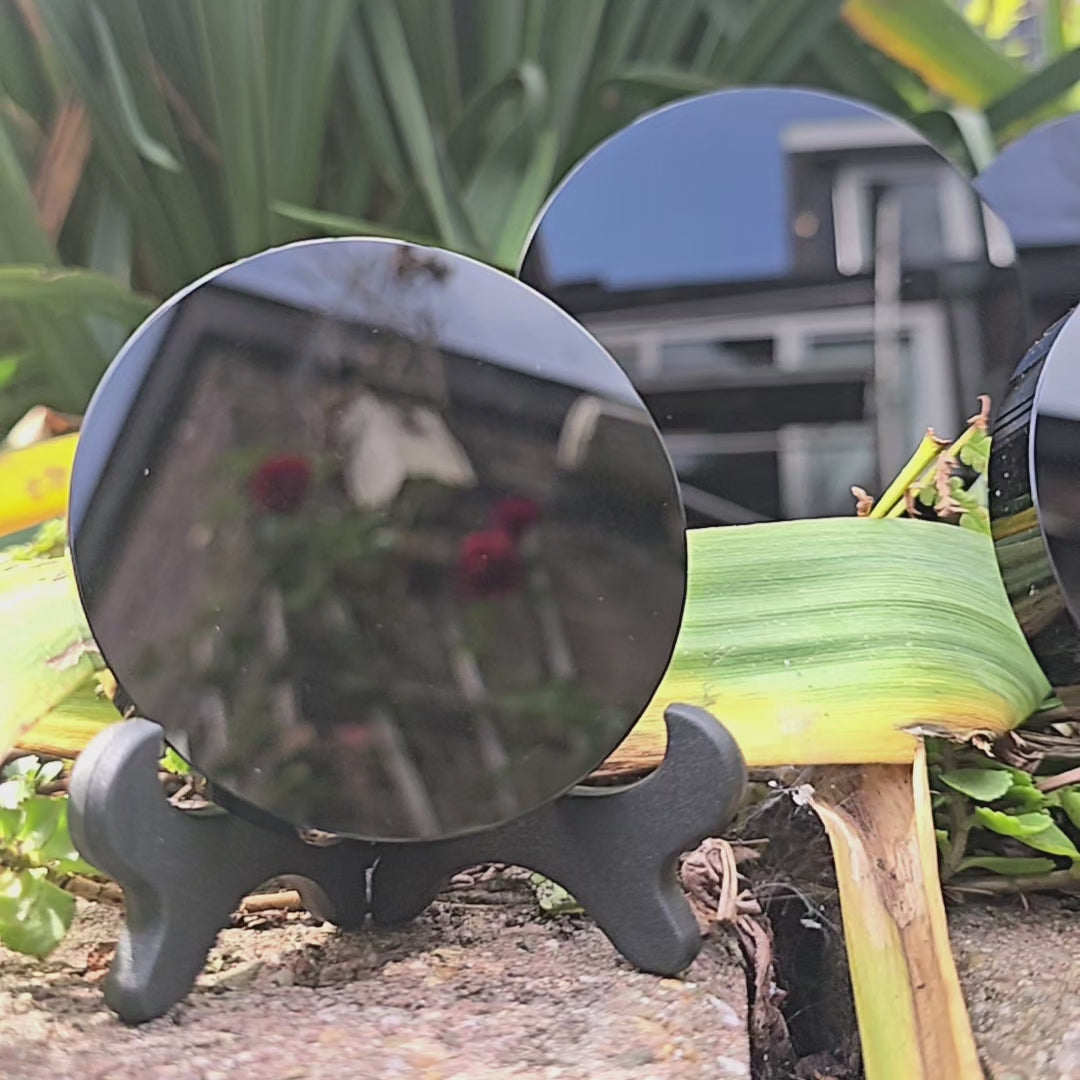 Deze zwarte obsidiaan spiegel is een spiritueel hulpmiddel en geen vervanging voor medische of psychologische zorg. Raadpleeg bij klachten altijd een professional.