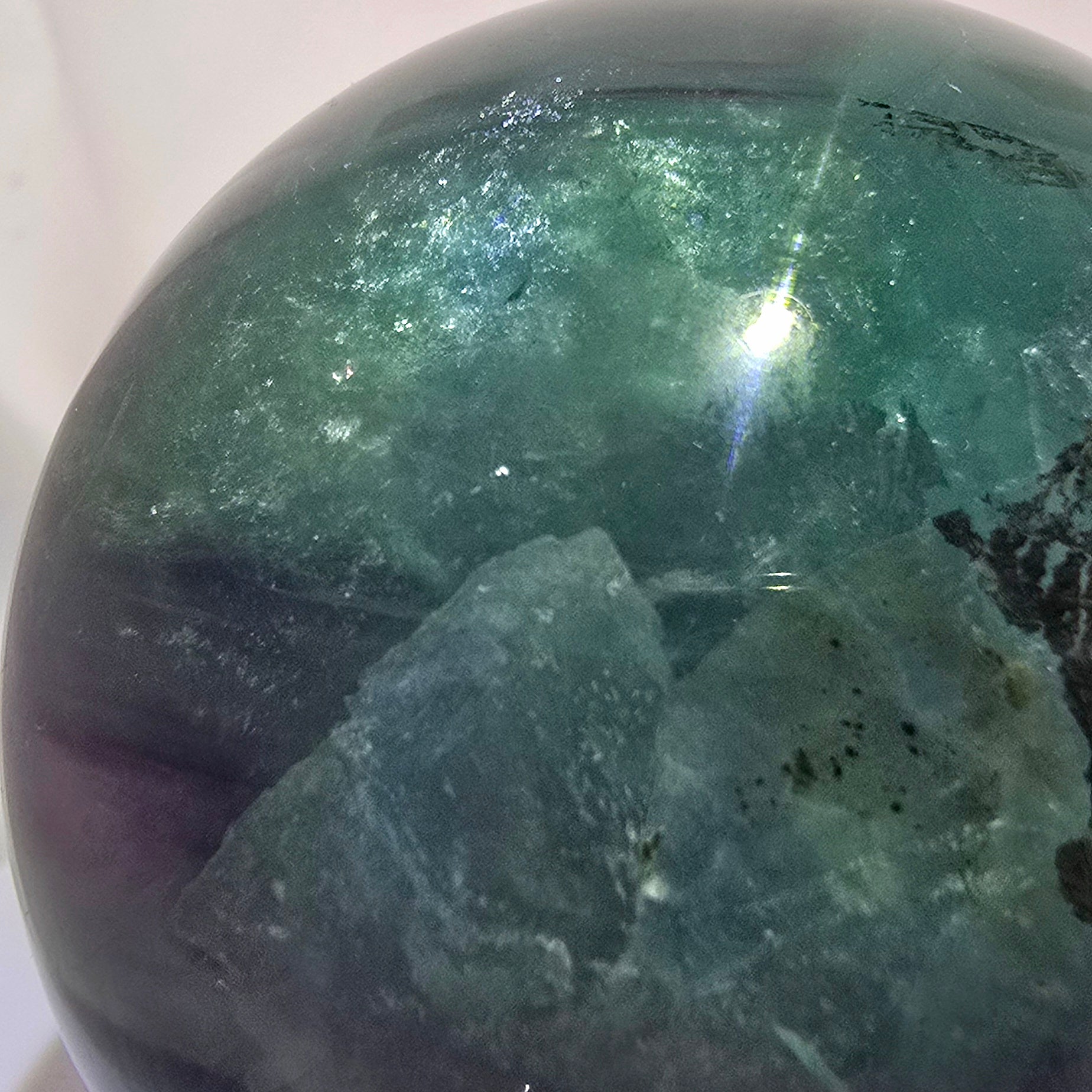 Paars of violet fluoriet: geassocieerd met het kruinchakra, bevordert spiritueel bewustzijn en verbinding.