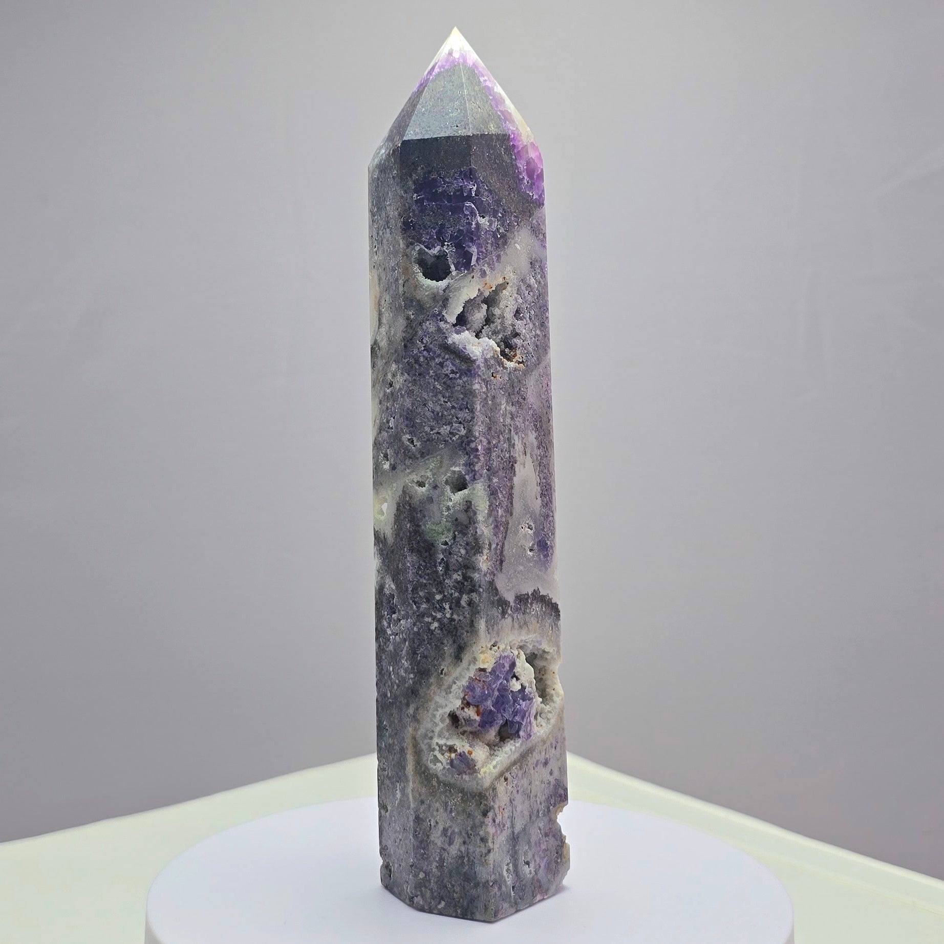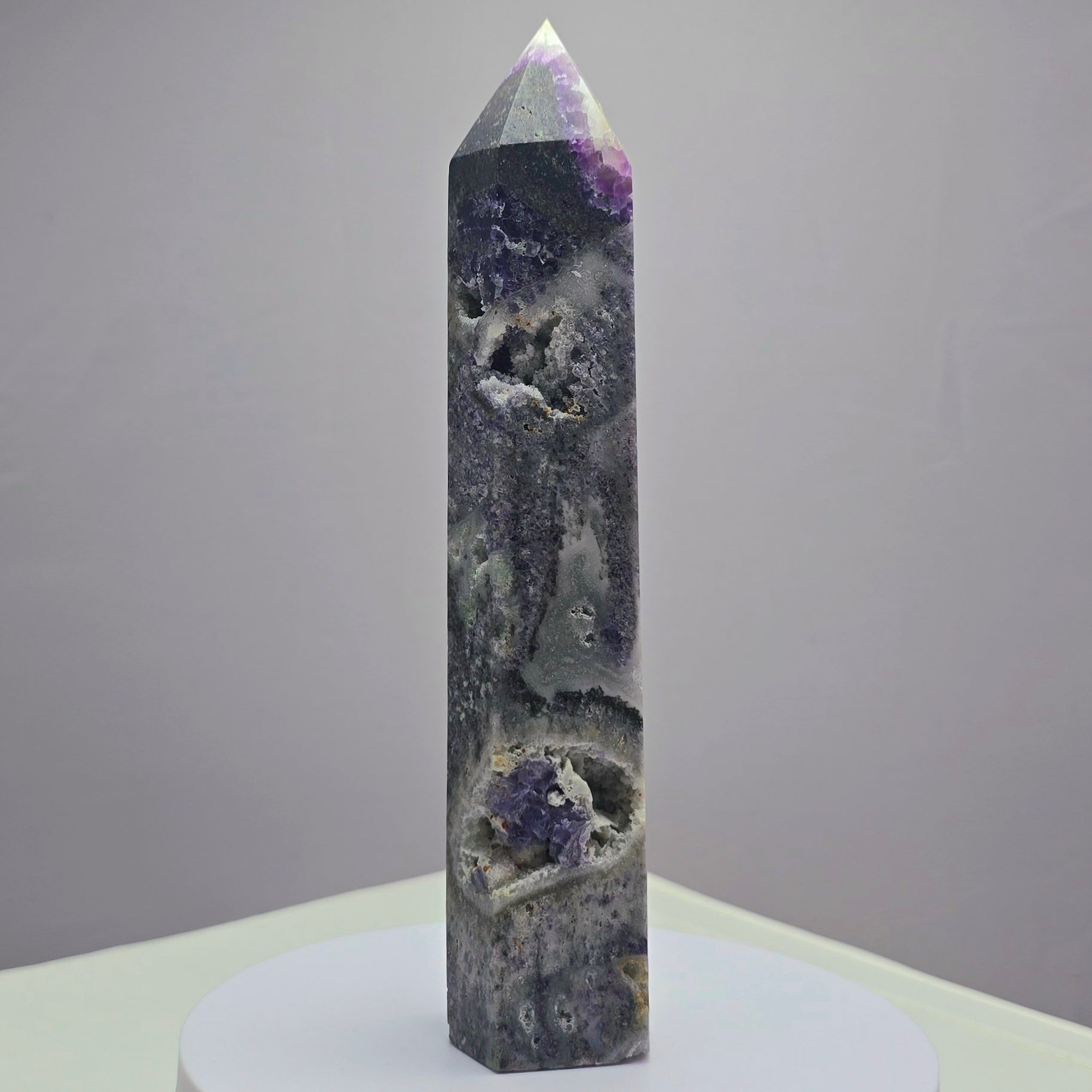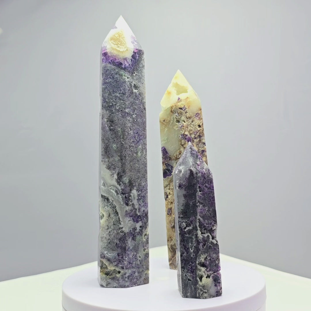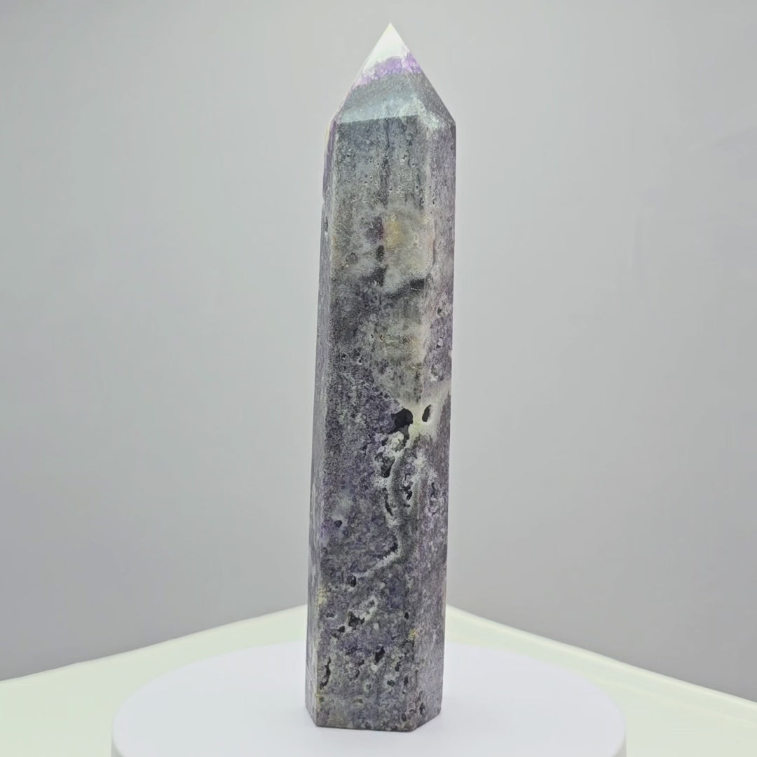 Fluoriet (Breccieus) toren 18,5cm hoog