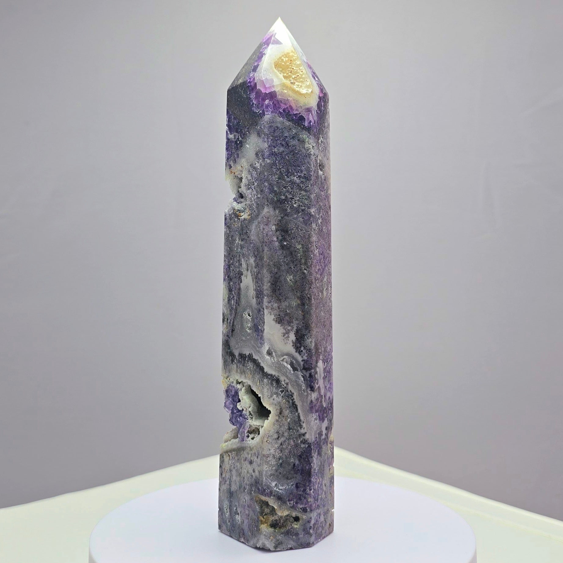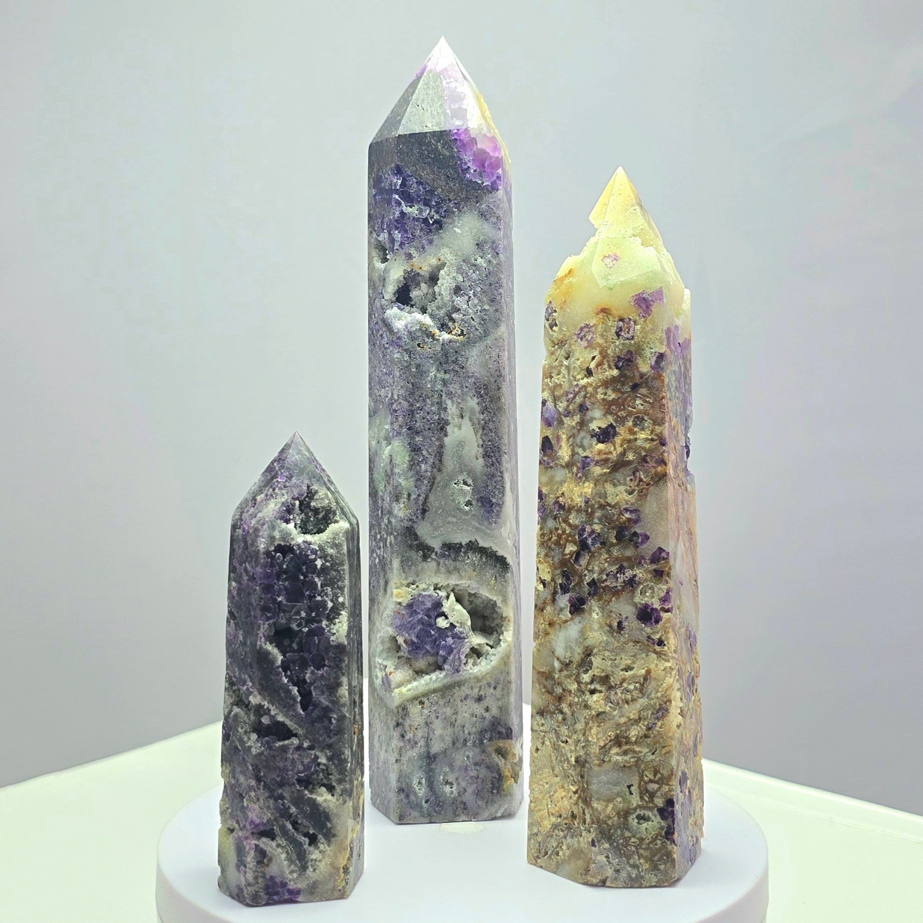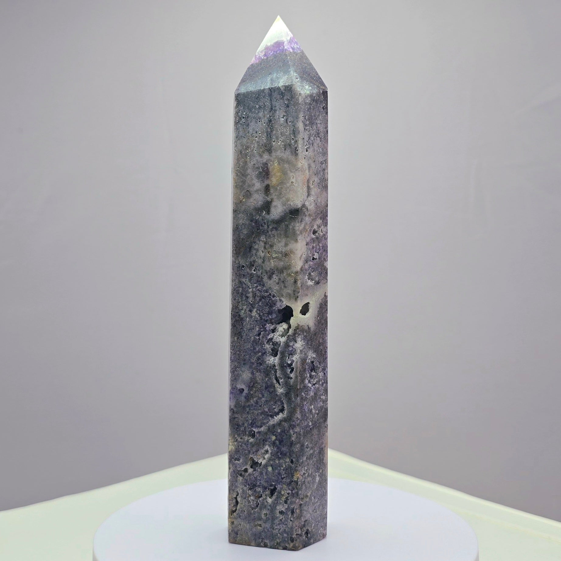 Fluoriet (Breccieus) toren 18,5cm hoog