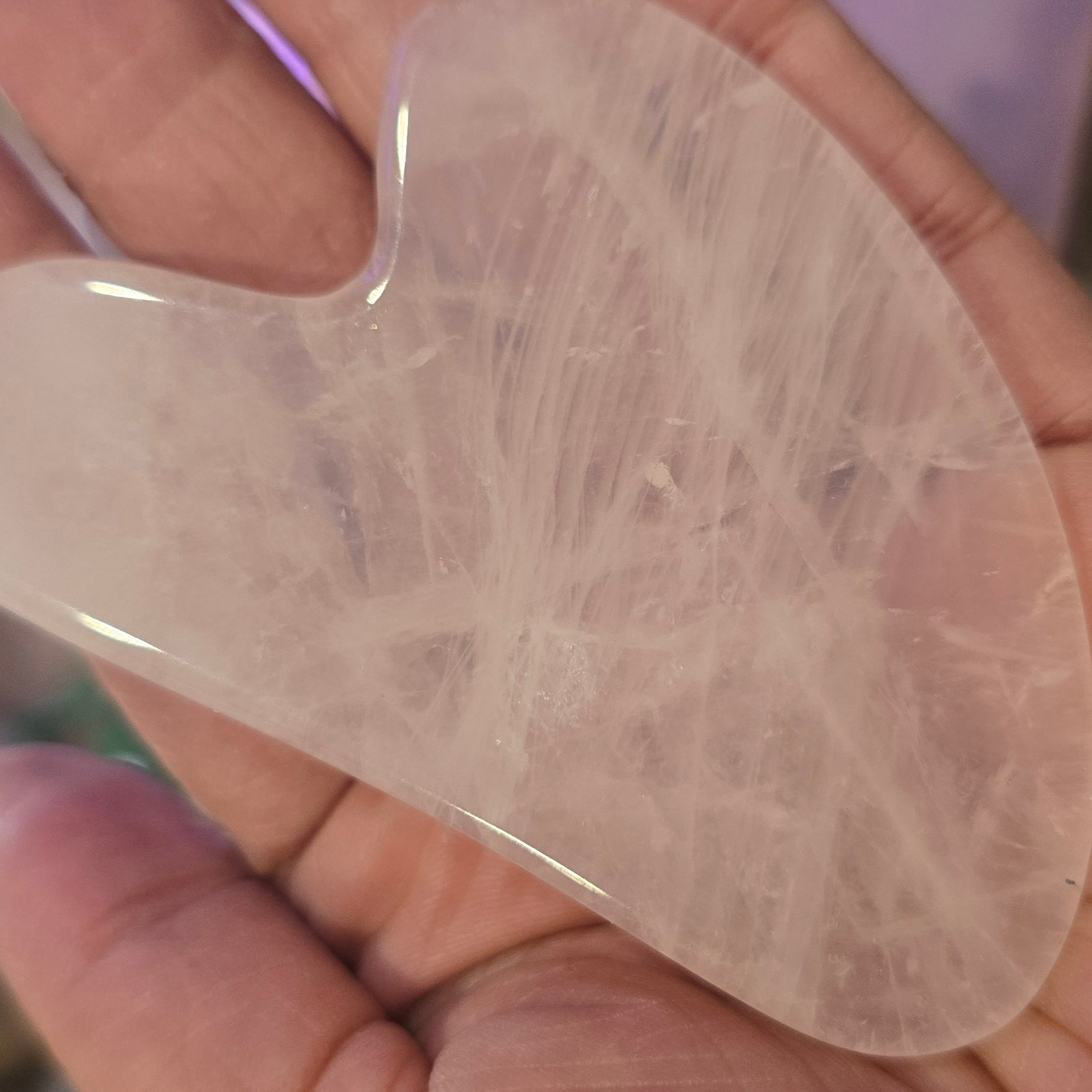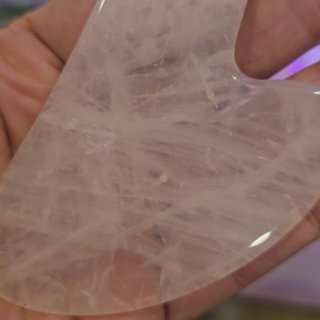 Guasha is een traditionele Chinese schraaptechniek die met edelstenen (zoals jade of rozenkwarts) de bloedsomloop stimuleert, spierspanning vermindert en afvalstoffen afvoert. Het wordt gebruikt voor gezichtsmassages voor een 'glow' en vermindering van rimpels, of op het lichaam om blokkades, pijn en stijfheid te behandelen.