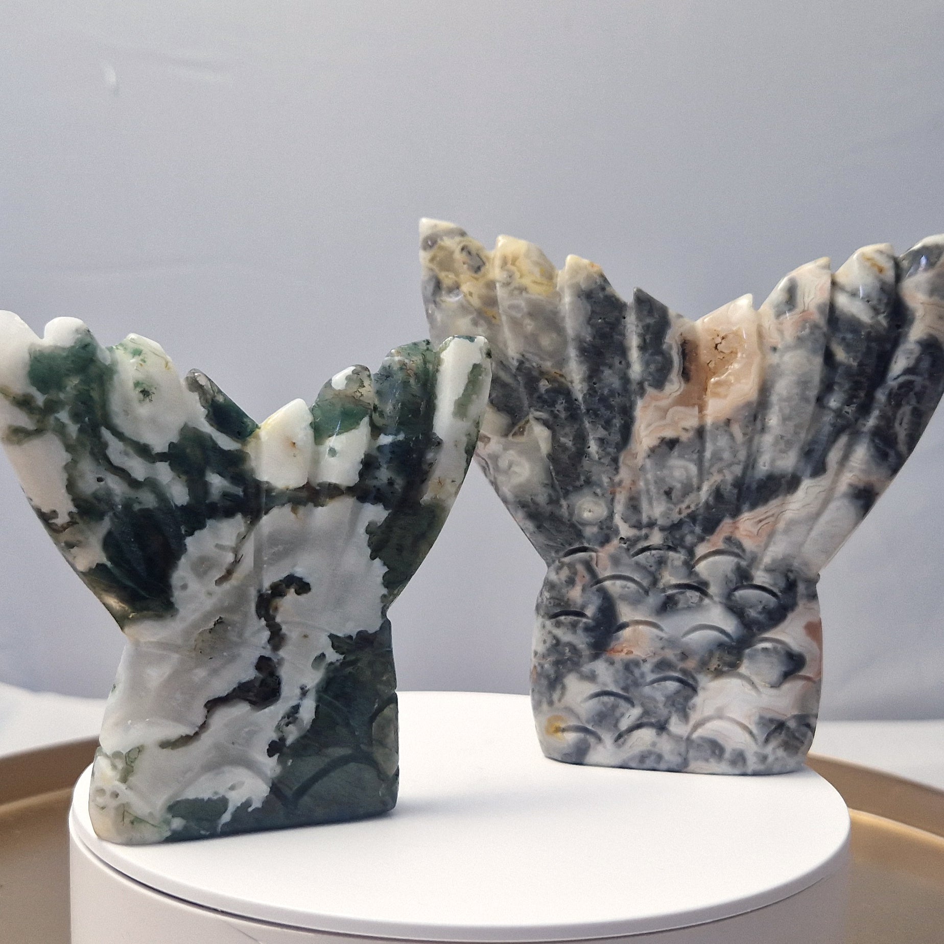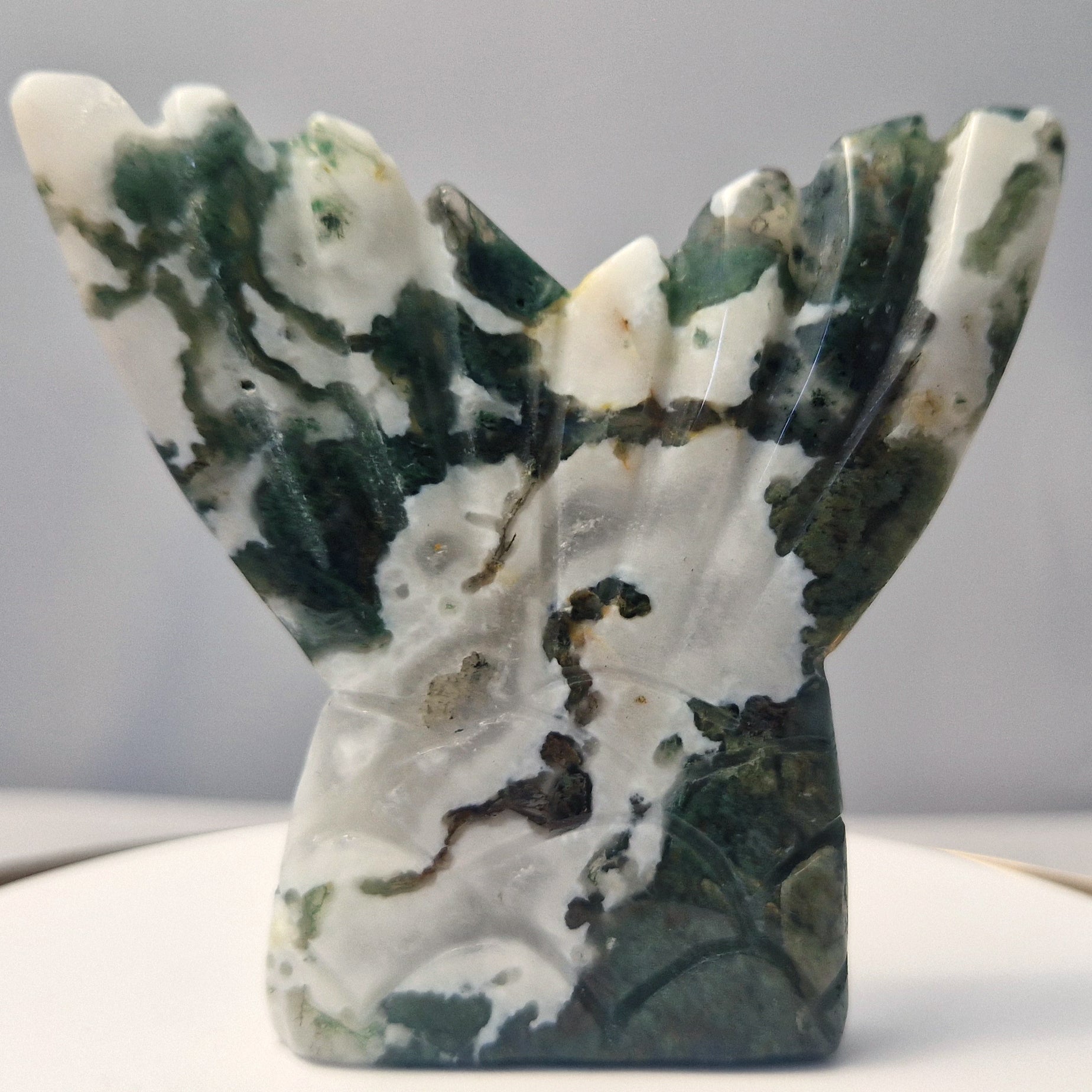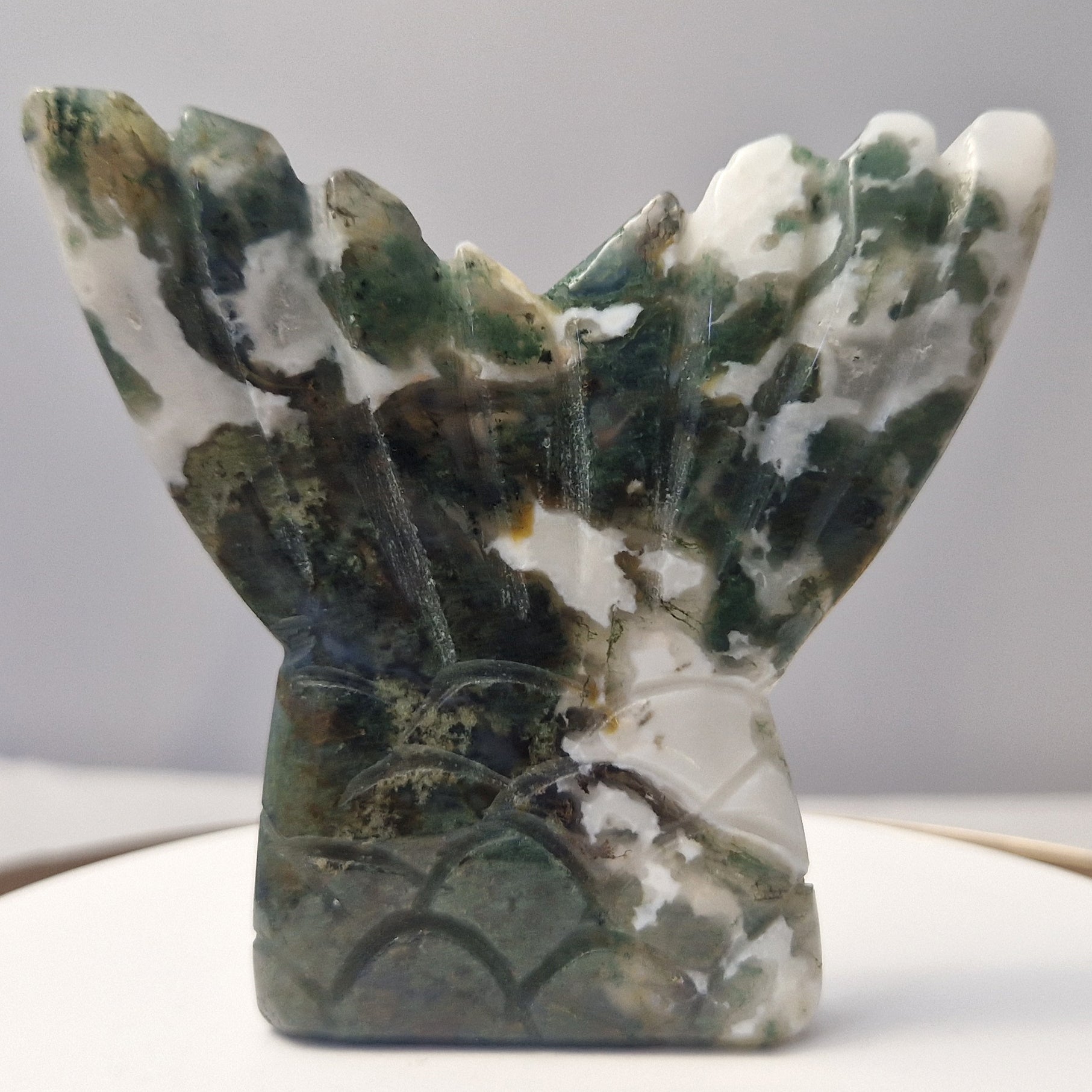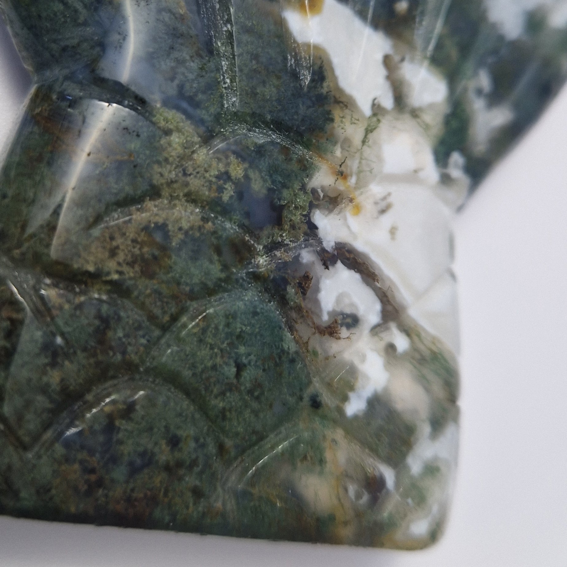 Mosagaat wordt geassocieerd met liefde, mededogen, evenwicht en harmonie. Er wordt ook aangenomen dat het een kalmerend en aardend effect heeft, waardoor het nuttig is voor het verminderen van stress en het bevorderen van emotioneel evenwicht. Het wordt vaak geassocieerd met de natuur en er wordt gedacht dat het de verbinding met de natuurlijke wereld versterkt en wordt beschouwd als een steen van overvloed. Er wordt gezegd dat het welvaart en succes aantrekt. Hoewel de associaties tussen kristallen en chakra's per beoefenaar kunnen variëren, wordt Mosagaat gewoonlijk in verband gebracht met de hartchakra.