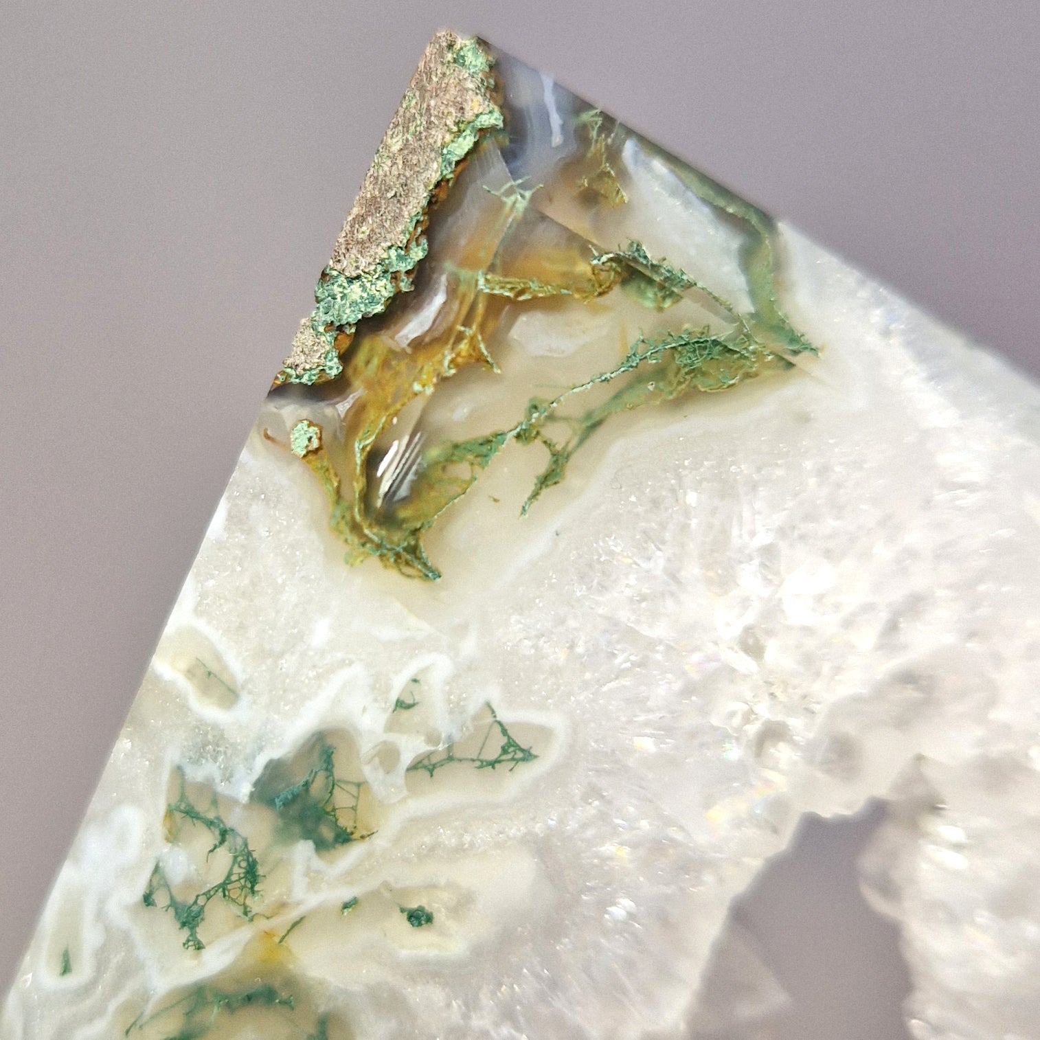 Mosagaat is een soort chalcedoon, een kwartsvariëteit die wordt gekenmerkt door zijn doorschijnende tot ondoorzichtige aard met insluitsels die op mosachtige patronen lijken. Deze insluitsels zijn doorgaans groen tot zwart van kleur en kunnen lijken op dendritische formaties of vertakkingspatronen. De basiskleur van Mosagaat kan variëren en omvat tinten wit, grijs of andere aardse tinten.