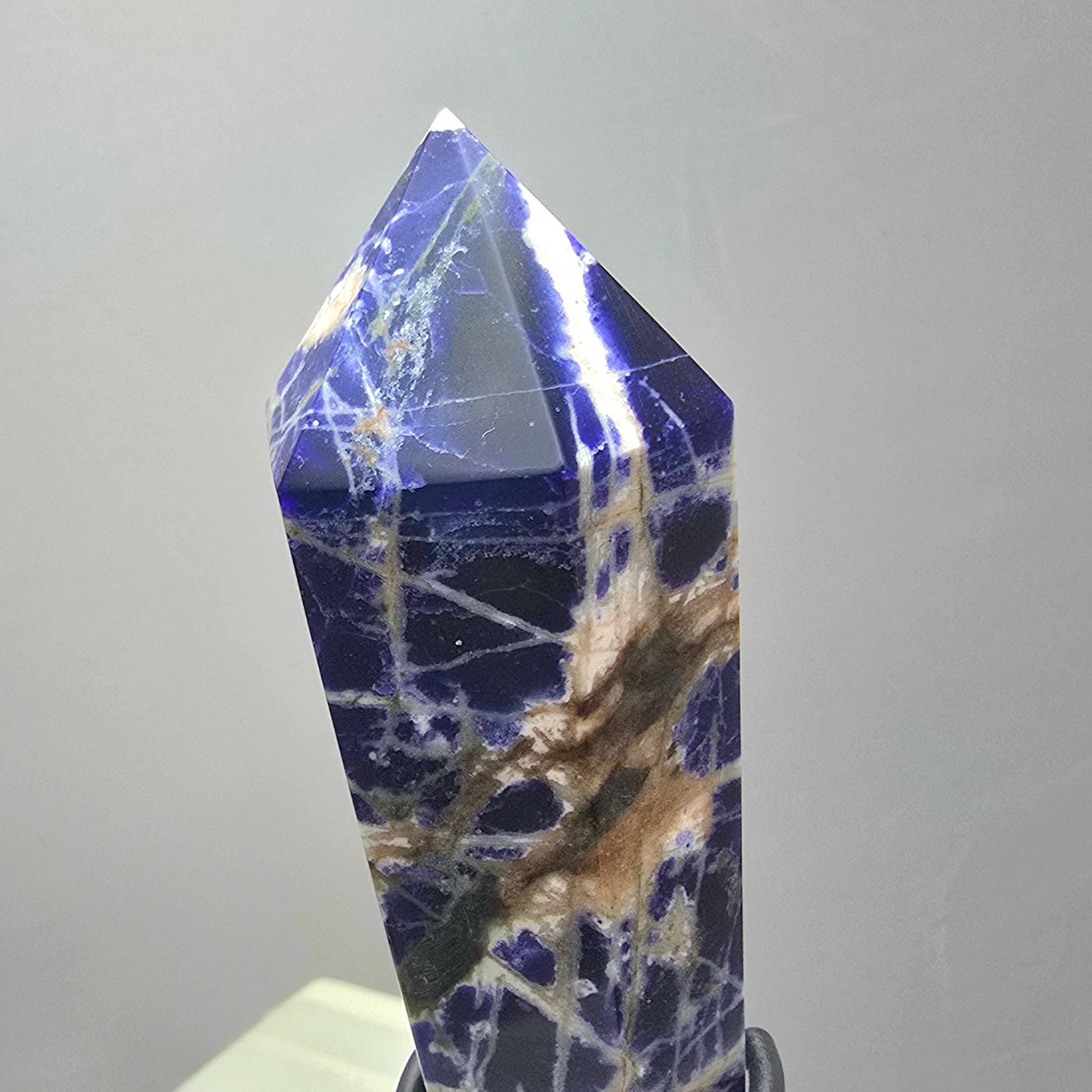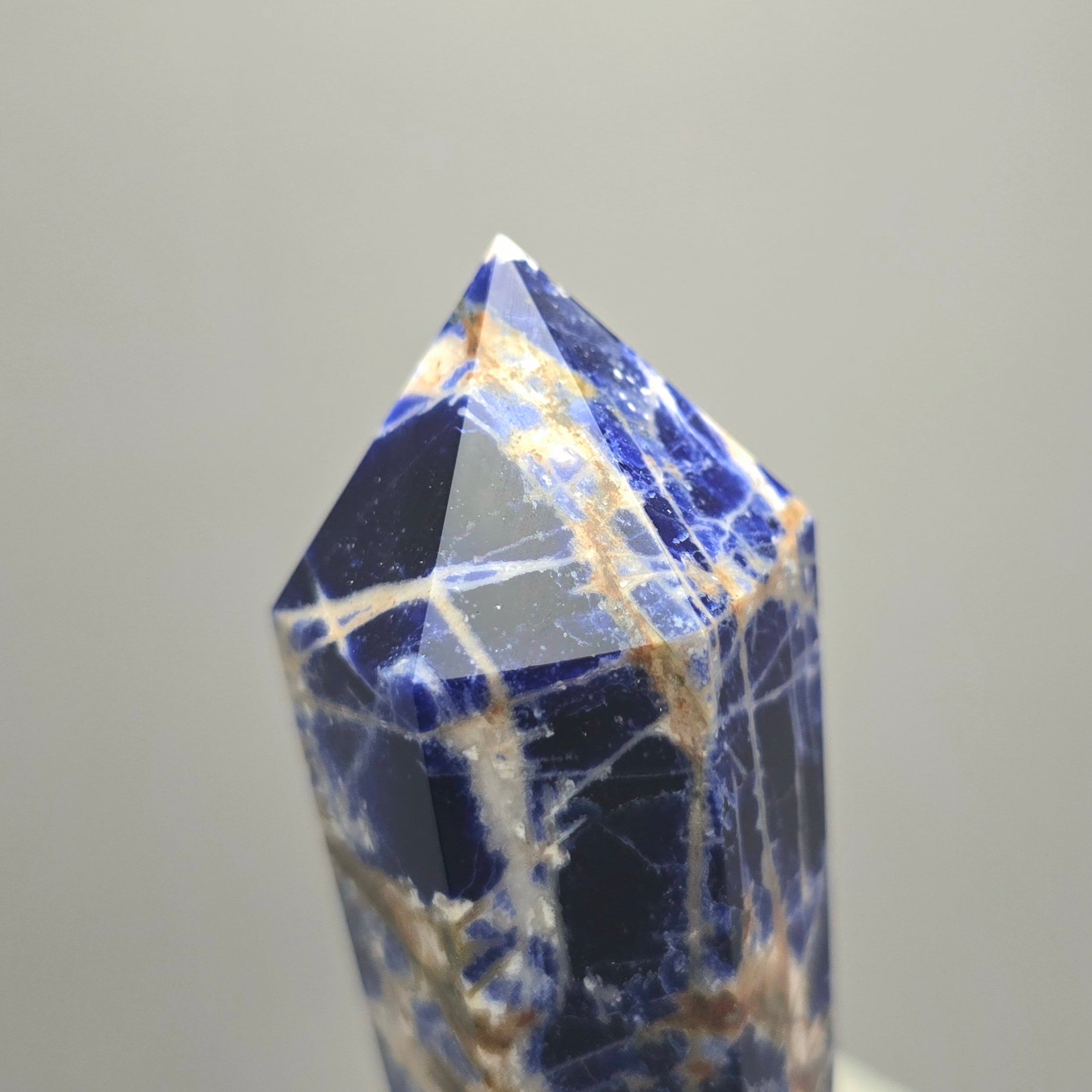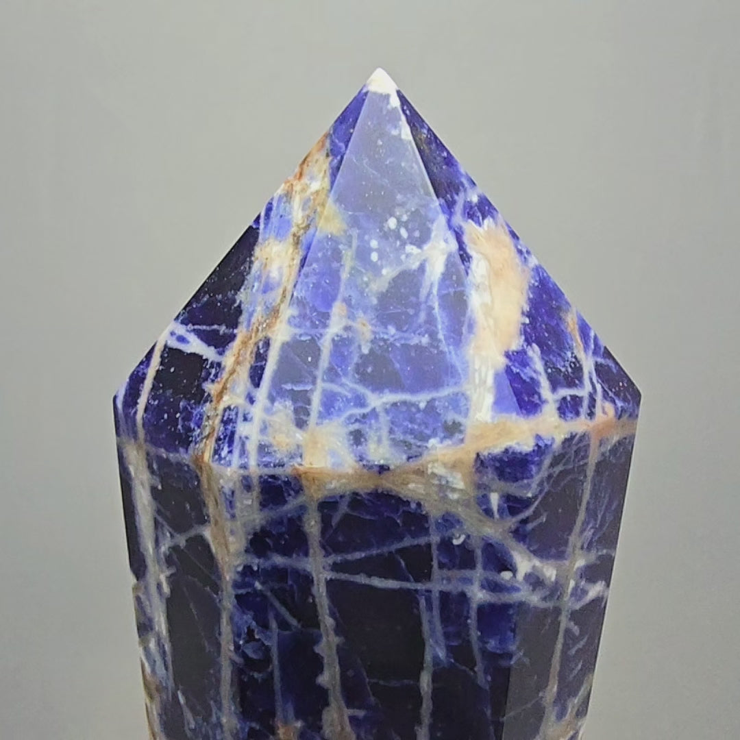 Sodaliet is een prachtig blauw mineraal dat vaak wordt gebruikt als edelsteen of siersteen. De meest voorkomende kleur van sodaliet is blauw, variërend van licht tot donkerblauw. Het kan ook witte strepen of vlekken hebben, meestal calciet. Soms kan sodaliet extra kleuren vertonen, zoals grijs, groen, geel of roze.