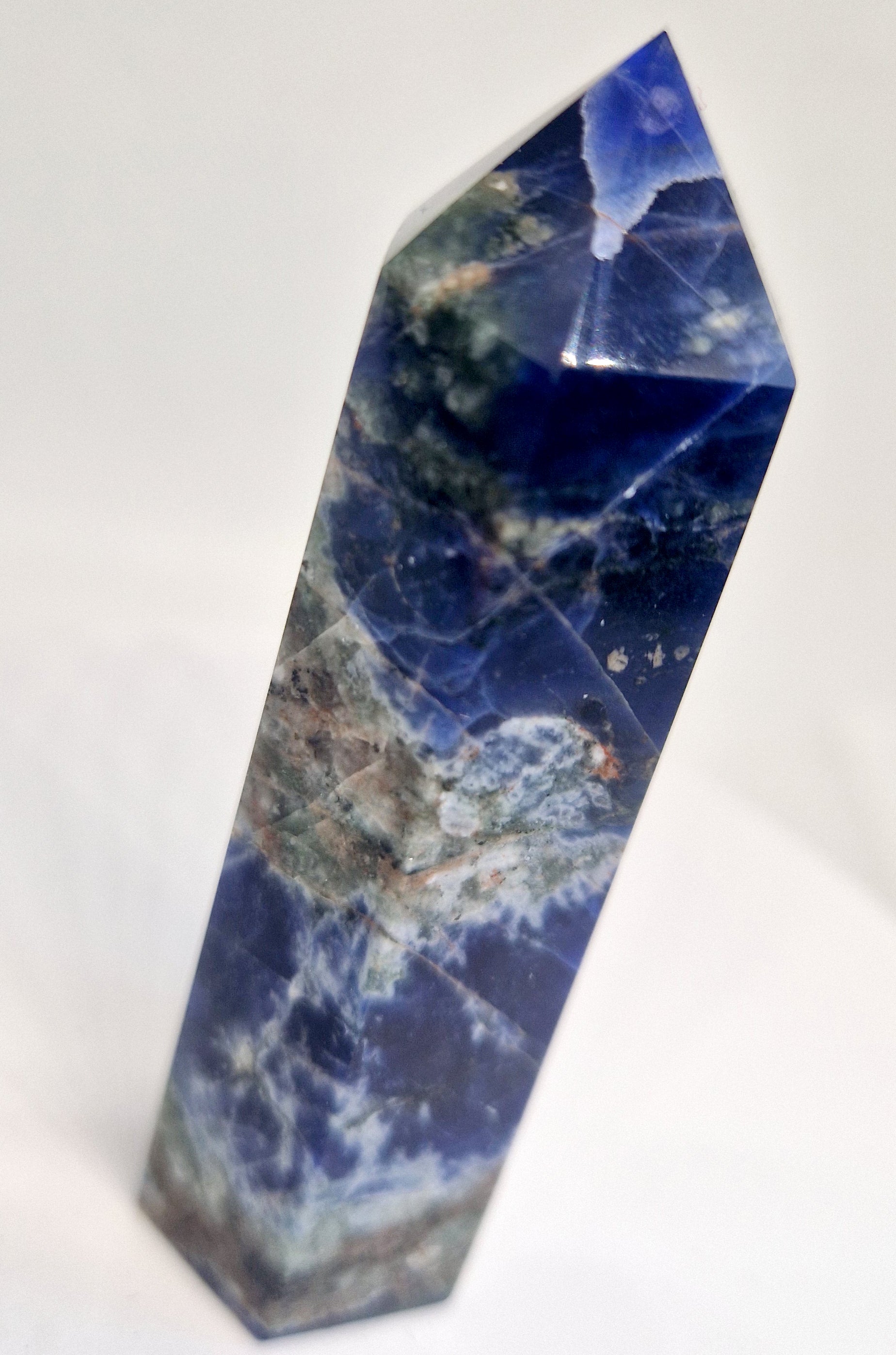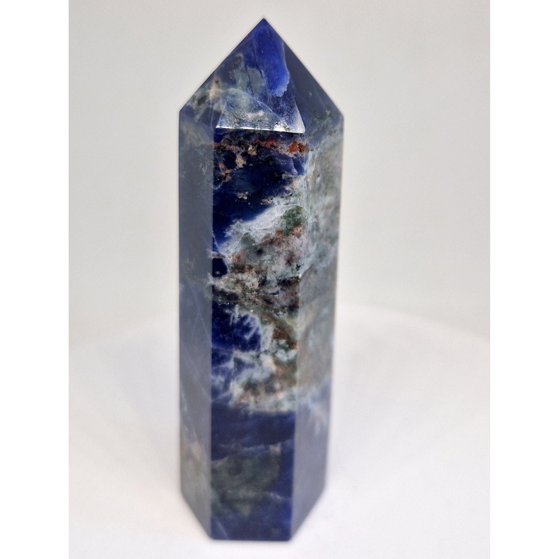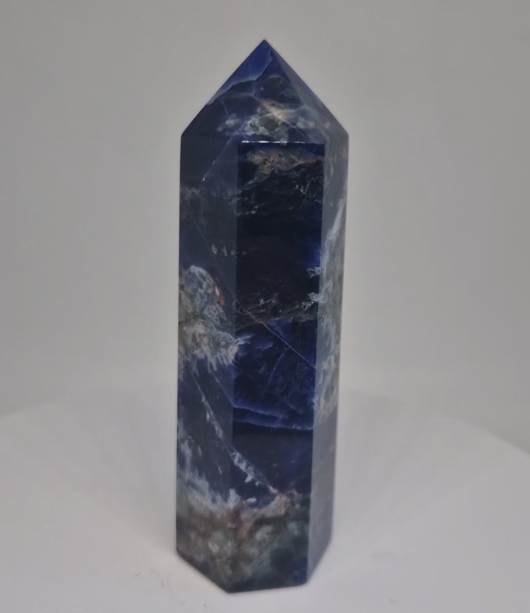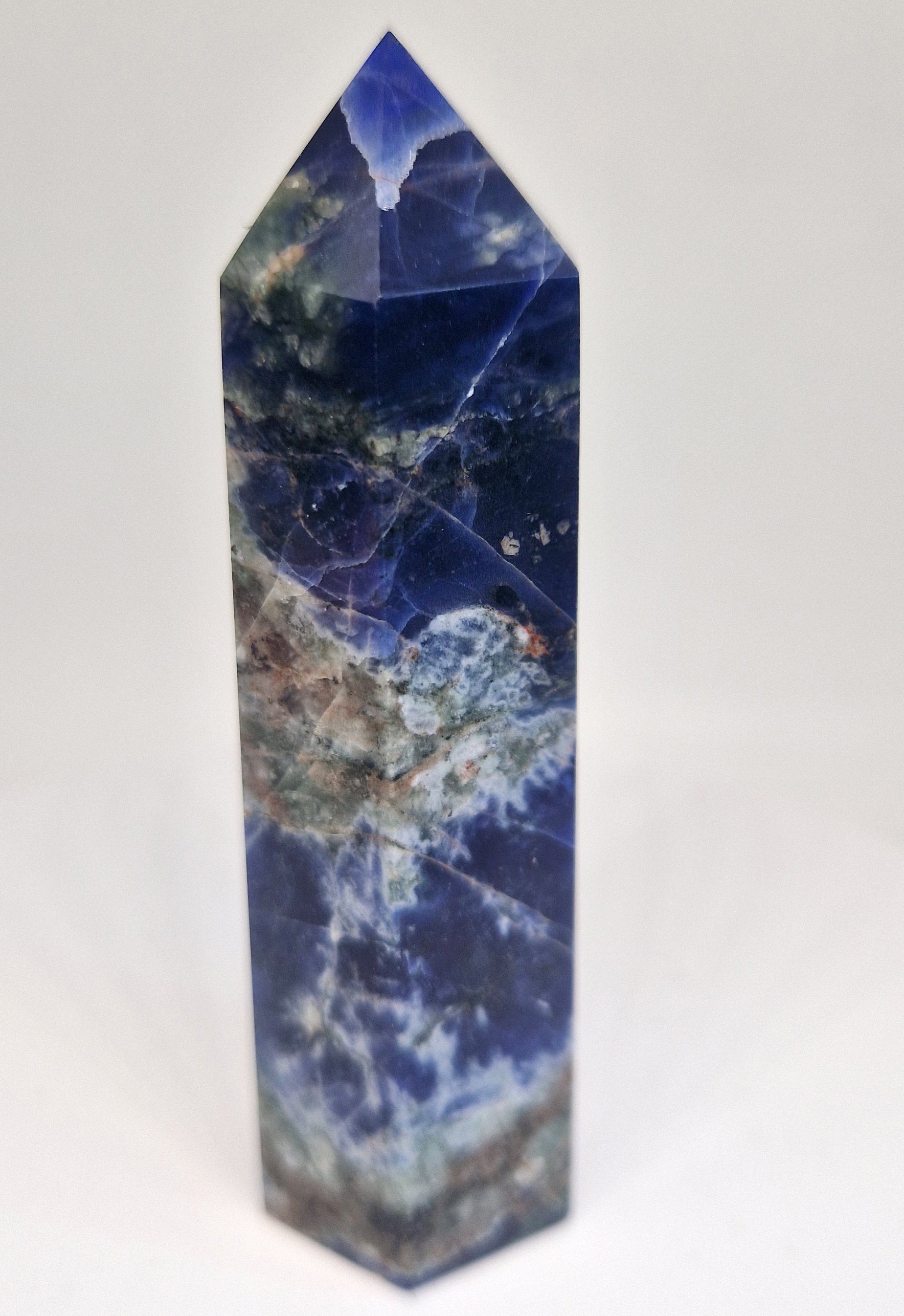 Sodaliet is een prachtig blauw mineraal dat vaak wordt gebruikt als edelsteen of siersteen. De meest voorkomende kleur van sodaliet is blauw, variërend van licht tot donkerblauw. Het kan ook witte strepen of vlekken hebben, meestal calciet. Soms kan sodaliet extra kleuren vertonen, zoals grijs, groen, geel of roze.