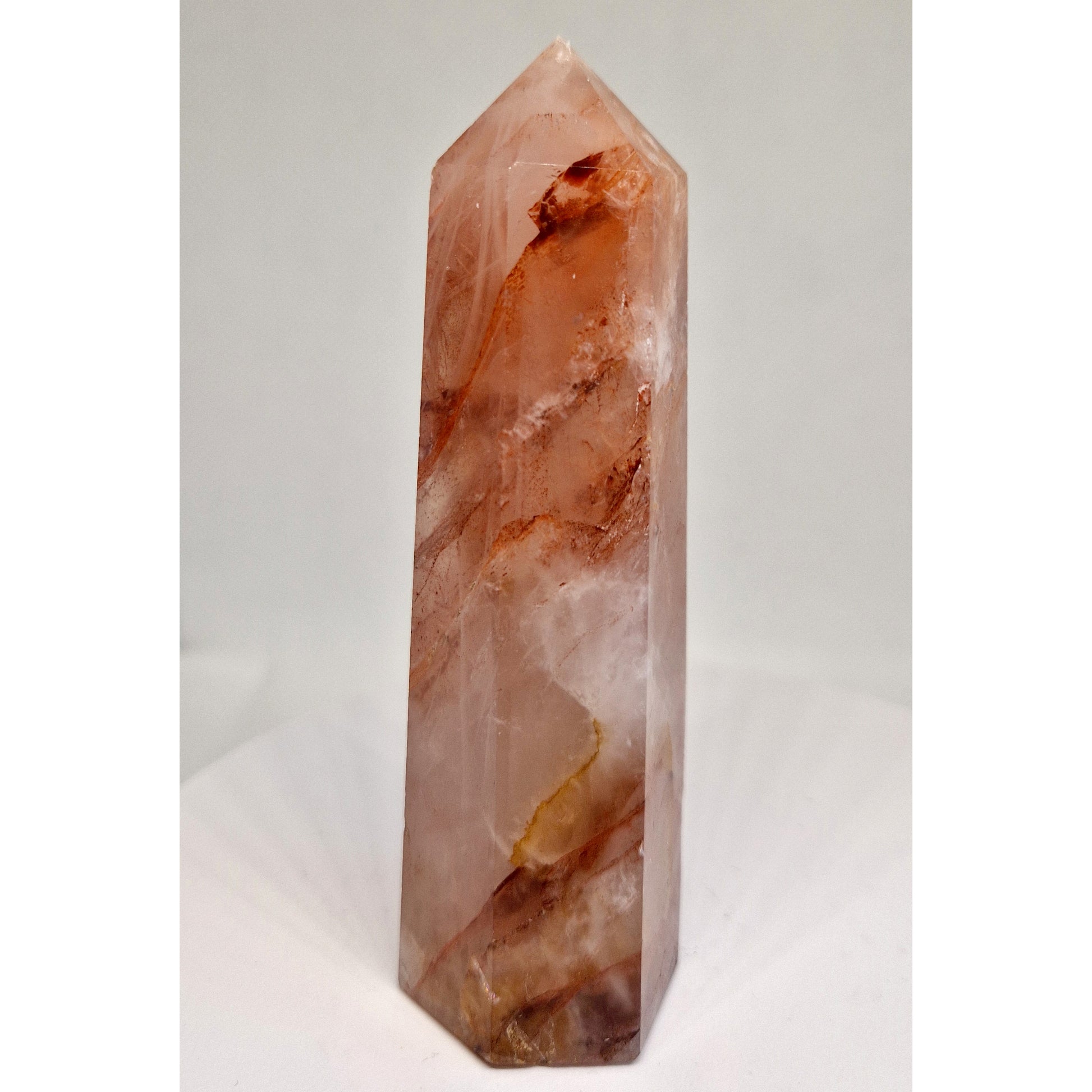 Vuurkwarts verwijst doorgaans naar een soort kwartskristal dat een roodachtige of oranje kleur vertoont als gevolg van de aanwezigheid van ijzeroxide of hematoide insluitsels. Deze insluitsels kunnen een prachtig kleurenspel creëren, dat lijkt op de flikkerende vlammen van een vuur, vandaar de naam 'vuurkwarts'. De intensiteit en verdeling van de kleur kan variëren, wat resulteert in unieke en visueel aantrekkelijke patronen in het kristal.